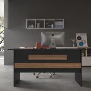 Stylish and Modern Designed Office Desk Meet our office desk that will add value to your workspace and bring together aesthetics and functionality! Manufactured from first-class chipboard material, this desk adds elegance to your office with its modern design, while it will be an investment that you can use for many years thanks to its durability.; Eye-Catching Design, Flawless Workmanship One of the most striking features of the desk is that there are no screws or screw holes on its upper surface.; In this way, it both offers a more stylish appearance and makes cleaning easier.; While providing comfort during work thanks to its smooth surface, it also enriches the atmosphere of your office with its aesthetic appearance.; Functionality and Ergonomics Together Our office desk stands out not only with its stylish appearance but also with its functionality.; While meeting all your needs thanks to its large work area, it provides comfort even in long-term use thanks to its ergonomic design.; Easy Installation, Long-Lasting Use Our product is ready for use in a short time thanks to its easy installation.; Thanks to its quality material and careful workmanship, you can use it for many years without any problems.; Dimensions The dimensions of our product are specified in detail in the last visual on the product page.; Please examine the visual.; You can choose the size most suitable for you.; Why Should You Choose This Office Desk? • Stylish and modern design: Adds value to your office.; • First-class chipboard material: Provides durability and long-lasting use.; • Large work area: Meets all your needs.; • Ergonomic design: Provides comfort even in long-term use.; • Easy installation: Ready for use in a short time.; Our office desk is an effective choice that will make your work environment more productive and enjoyable.; Don’t miss out on this desk that offers elegance, functionality and durability all together!